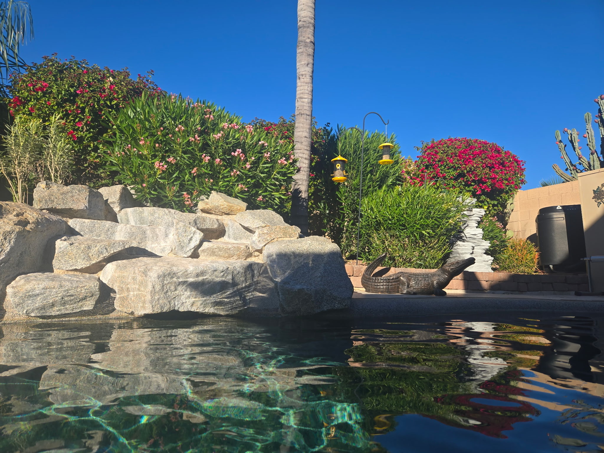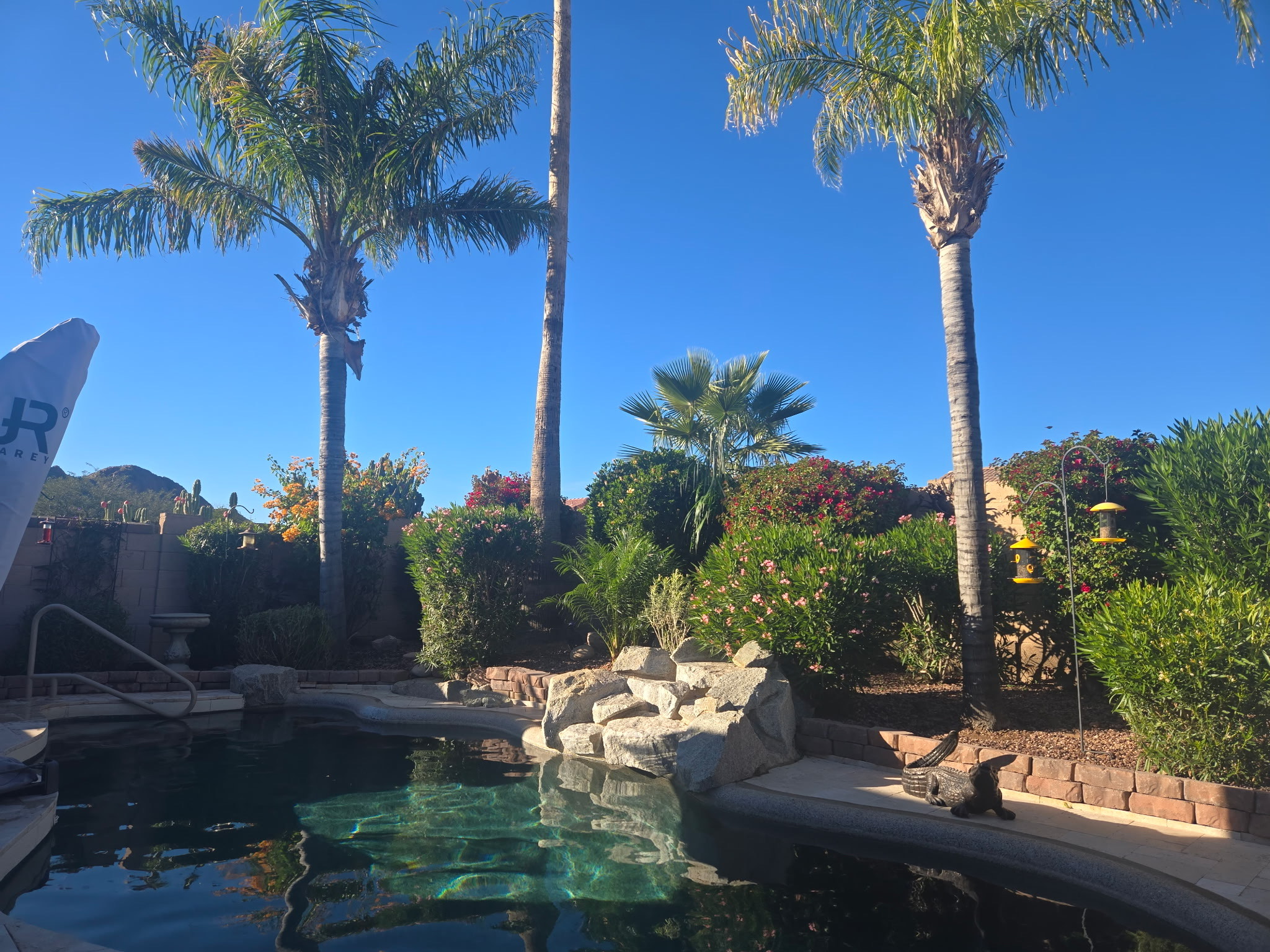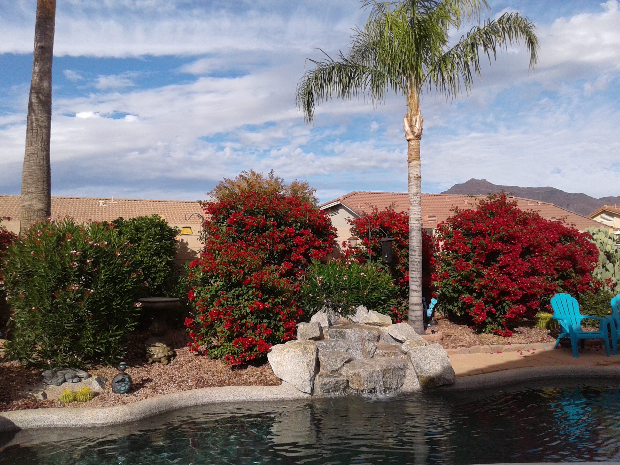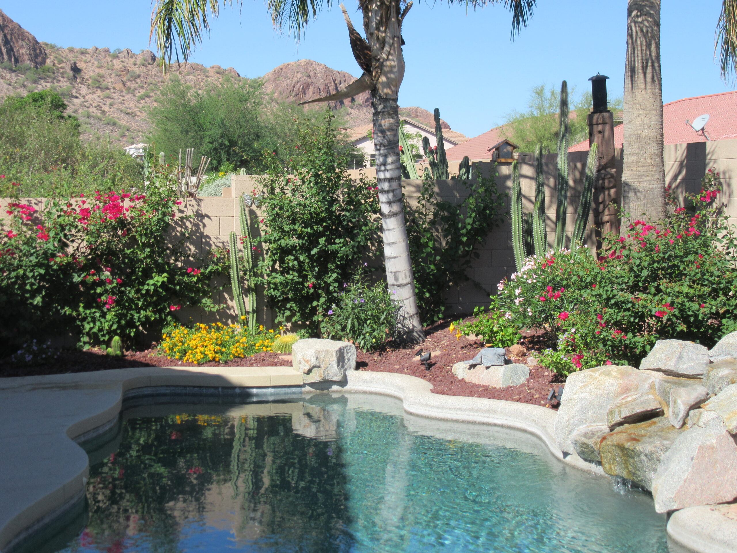 Our privately owned vacation home is located just 40 minutes from the Phoenix Airport in the prestigious Gold Canyon East community with views of both Dinosaur and Superstition Mountains. Enjoy the serenity and views from the backyard oasis which features a salt water pebble tec pool, palm trees, cactus and flowering plants. Hummingbirds, Cardinals, Baltimore Orioles, Doves, Woodpeckers and other native birds are frequent visitors.